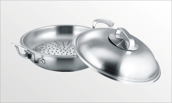 Wok with 3ply body: 0.4mm 304ss, Alu, 0.6mm 430ss/ total thickness-2.3mm/2.5mm/2.8mm.