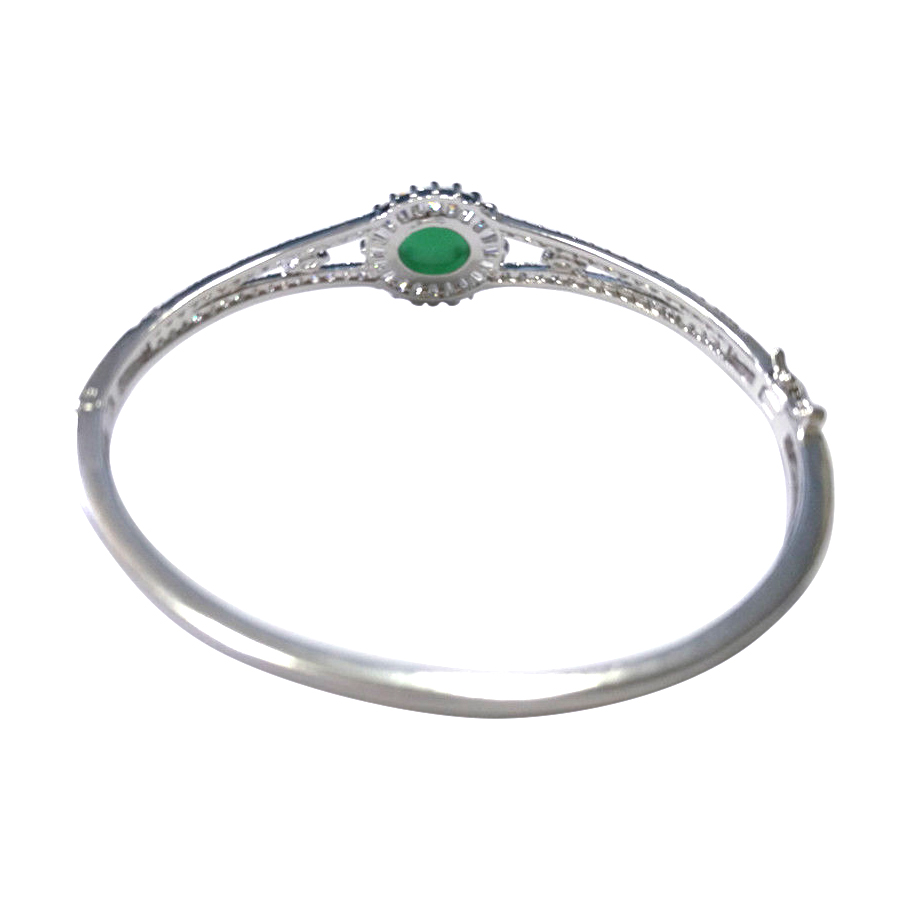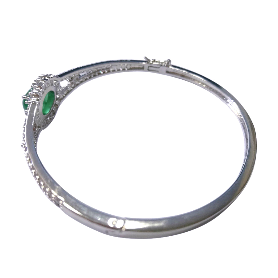 Woman Brass Bangle with Imitation Rhodium and Cubic Zirconia and Chalcedony Stone