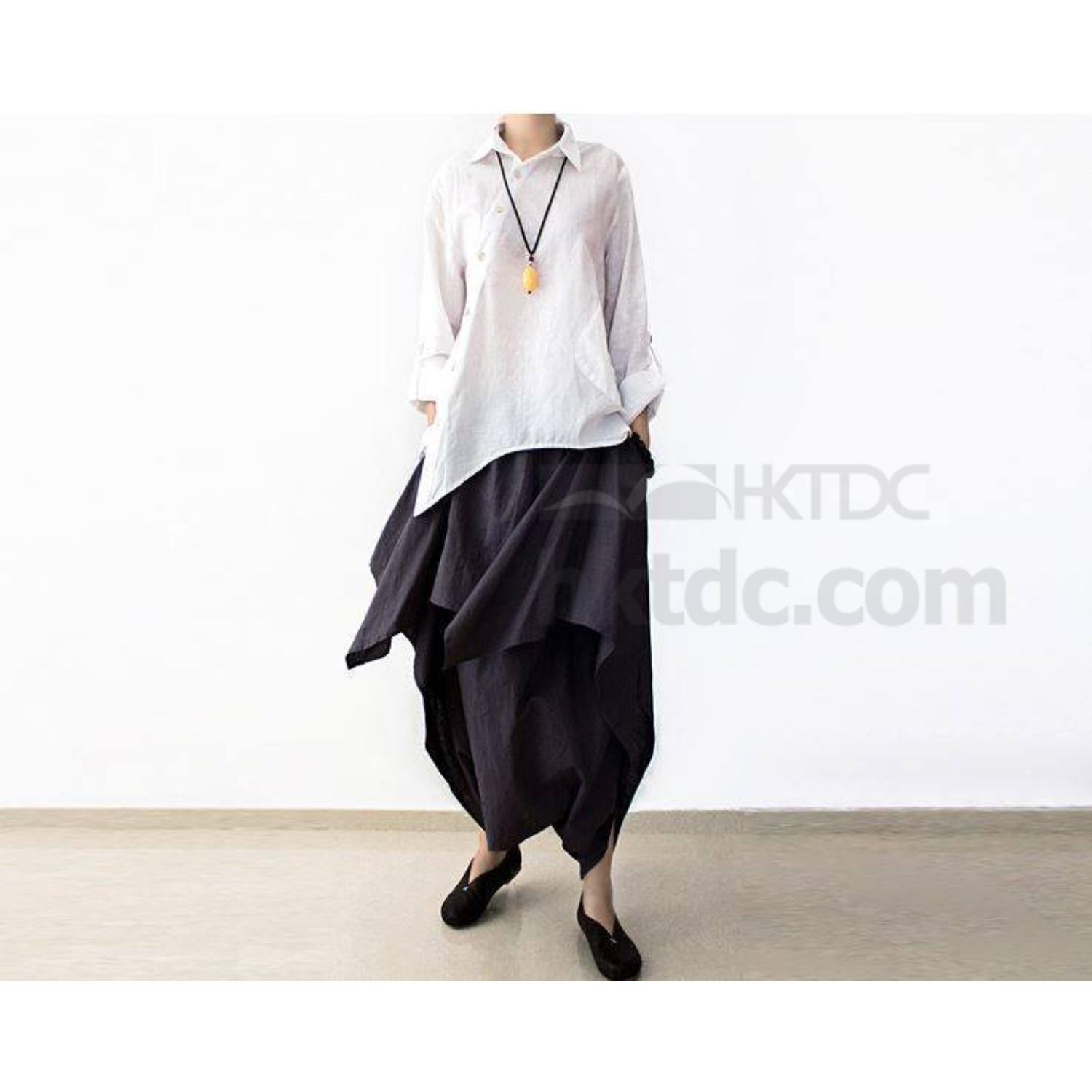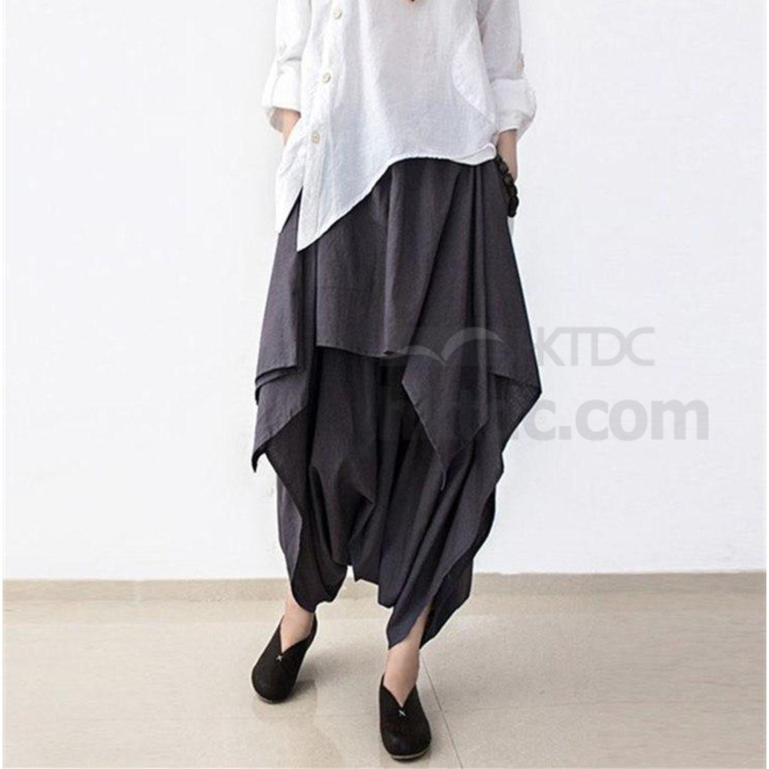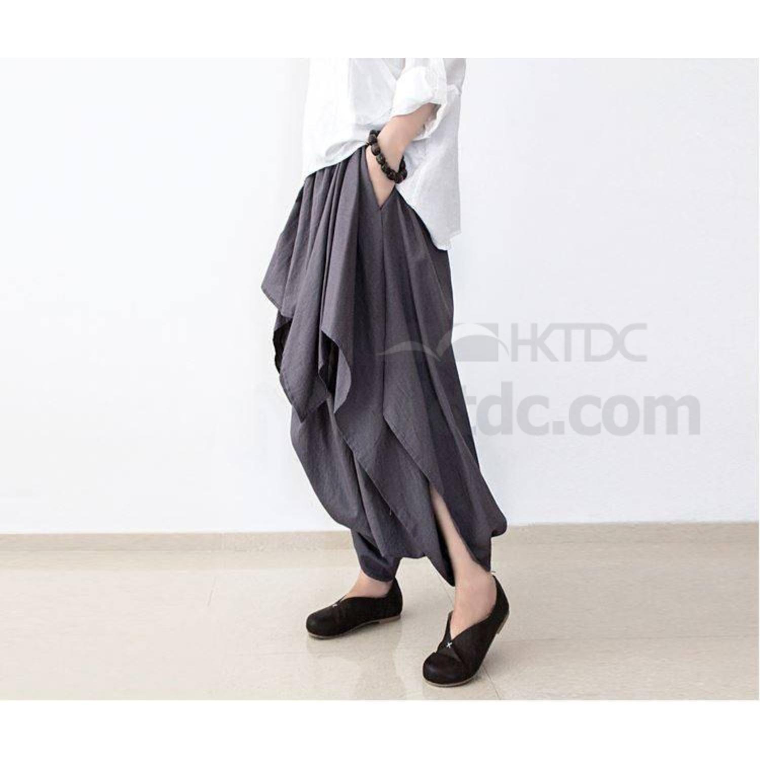 The pants fabric is 70% cotton and 30% linen, belonging to the irregular cut loose version, wearing more comfortable, it will not be tight feeling. Wearing such a pair of pants will make you look different and attractive.