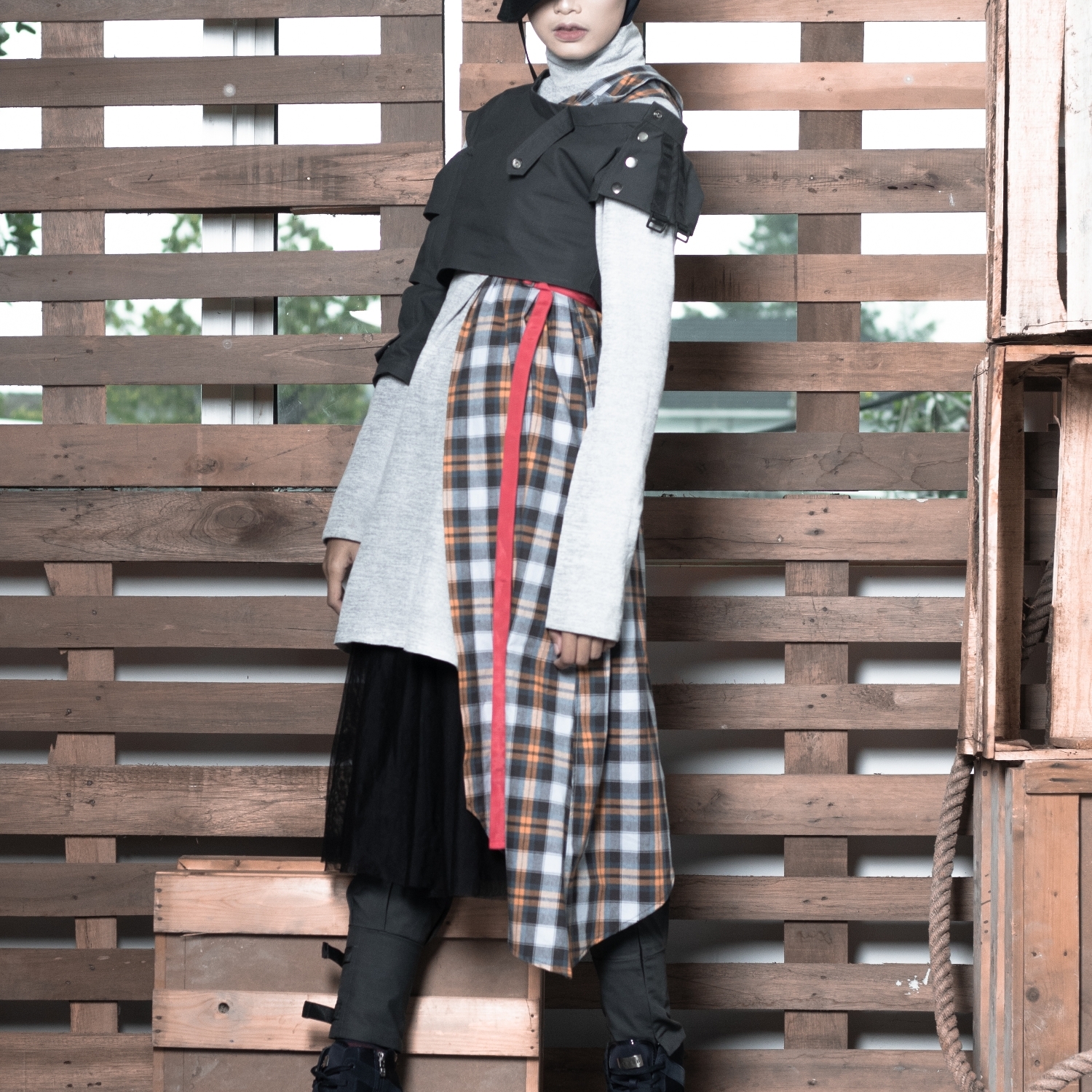 Cropped outer, Belted shirt tunic, Ripstop belt pants