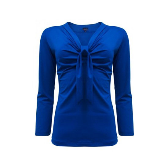 This ladies’ long-sleeved blouse comes in a deep blue color. The collar can be tied into a bow for incredible charm. Soft and slightly elastic, this amazing blouse can offer you incredible comfort.