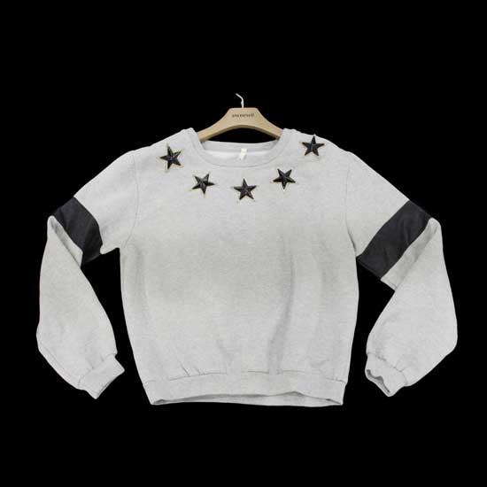 This is a two-toned women’s T-shirt with a round neckline and long sleeves. It is made of 35% polyester and 65% cotton for a comfortable touch. This casual T-shirt has elastic bands at the cuffs and hem.