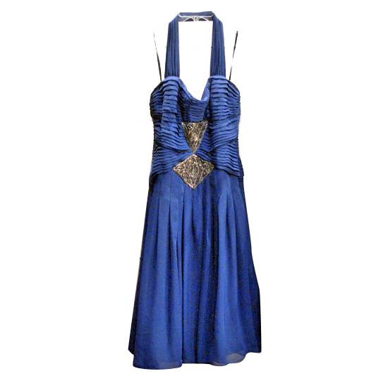 This women's evening dress is made of 65% viscose and 35% nylon to give cozy and comfortable feel when wearing. It has a sophisticated design with all over pleats and stone and beads trim.