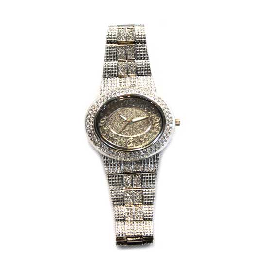 This is a women’s quartz analog watch with a silvery tone. The circle-shaped dial comes with three hands and an Arabic numeral display for easy time reading. This elegant alloy watch with sparkling stones is an ideal choice to complete your outfits.