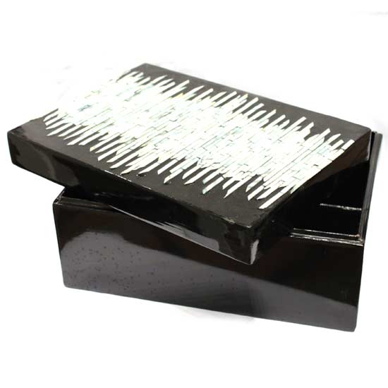 This wooden box comes in a classical rectangular shape. The surface is laminated for added shininess and durability. This item is an excellent tool to store your precious items.