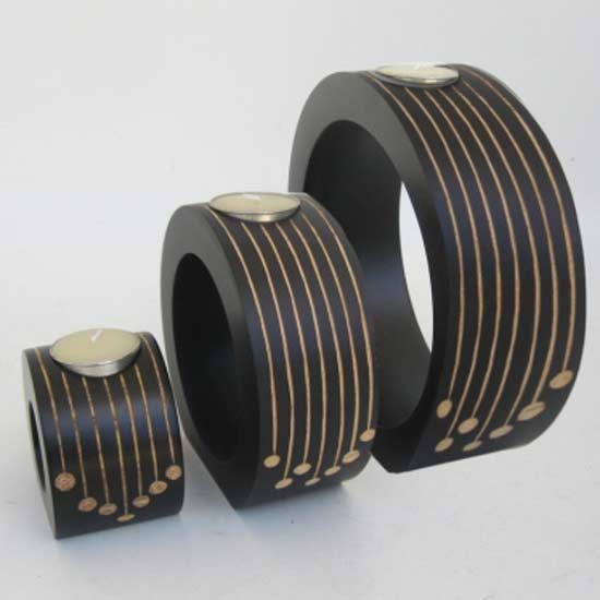 Delight your home décor with this gorgeous candle holder set. This is a set of 3 candle holders in a ring shape. Exquisite patterns on the wooden ring make them cool decorations for various indoor settings.