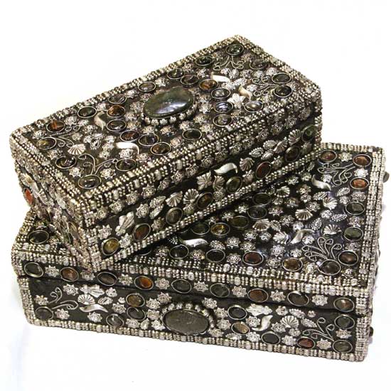 The decorative jewelry box set comes with 2 pieces. They are decorated with silvery and natural-color beads for a touch of uniqueness. These jewelry boxes are excellent items for storing your precious jewels.