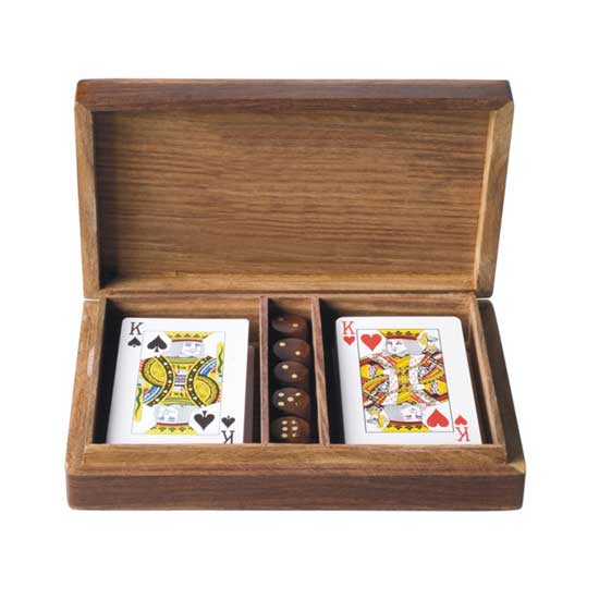 This wooden double-card dice box comes with a top-quality wooden housing delicately polished. The 4 dices can be arranged neatly in the middle for added user-friendliness. This box with a lightweight housing is a nice travel companion.