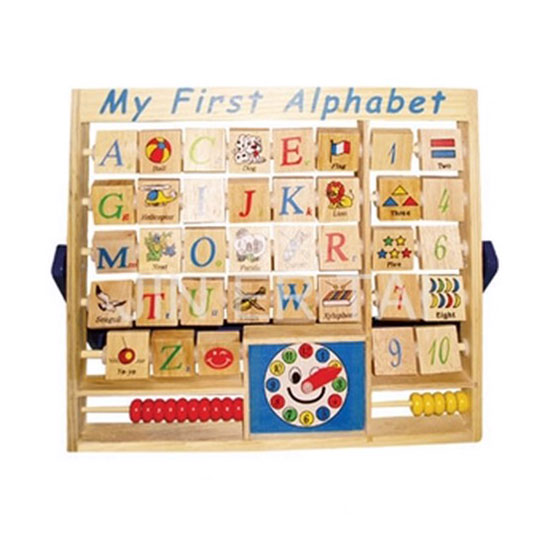 This is an educational toy made of quality wood. It is printed with colorful alphabets, numbers, and other patterns. This item provides an interesting way for children to learn basic knowledge.