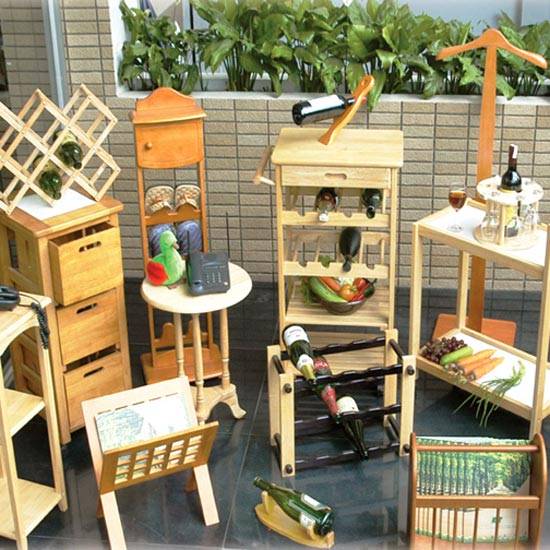 This set of wooden furniture is best to be put in living rooms. It includes cupboards, wine racks, a telephone table and other furniture usually found in living rooms. Their simple and natural design is suitable for home of everyone.
