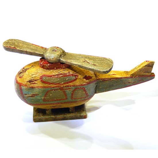 This lovely helicopter decoration is made of wood. The details are painted by hand, making the helicopter more precious and unique. Embellish your home with this special helicopter.