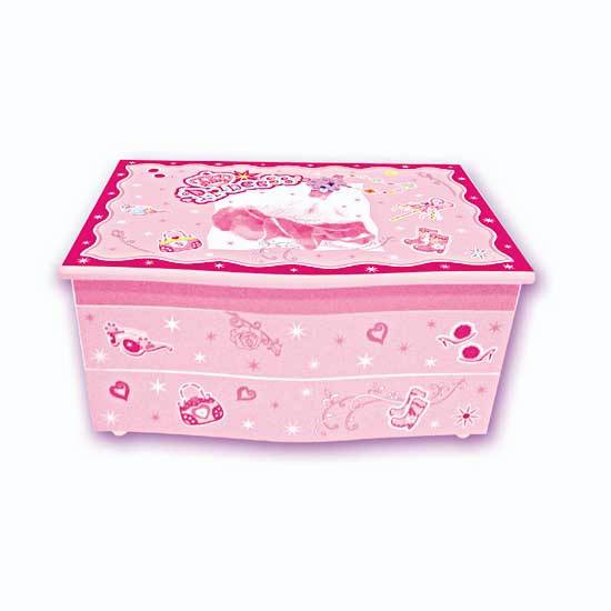 The magical wooden jewelry box features a girlish design in pink finishing with twinkling lights. It will light up automatically when the lid opens. Multiple colors are available for your options.