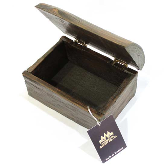 The jewelry box features a rectangular shape with a hinged closure. It is made of teak wood with medium grain patterns for a unique decorative touch. This jewelry box makes a pretty way for storing your keepsakes and accessories.