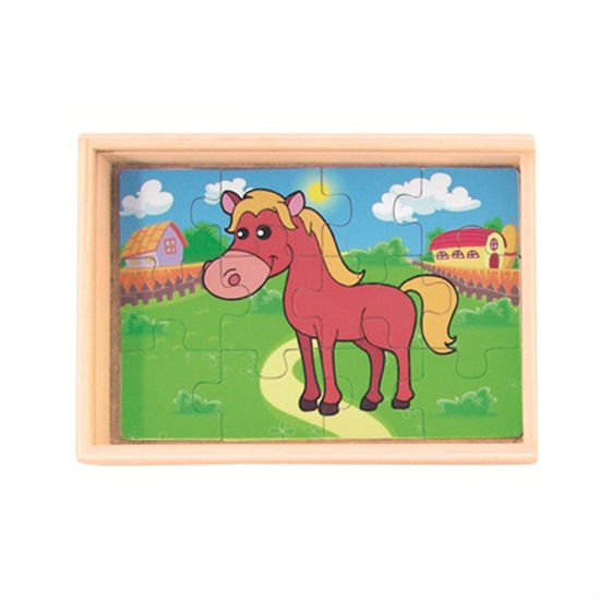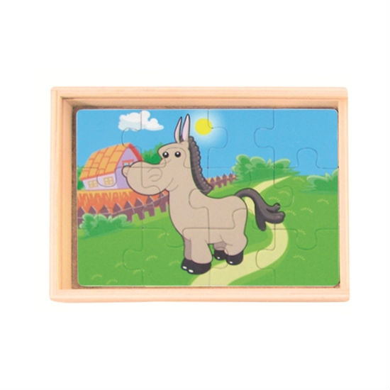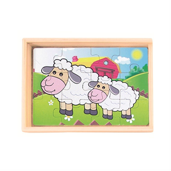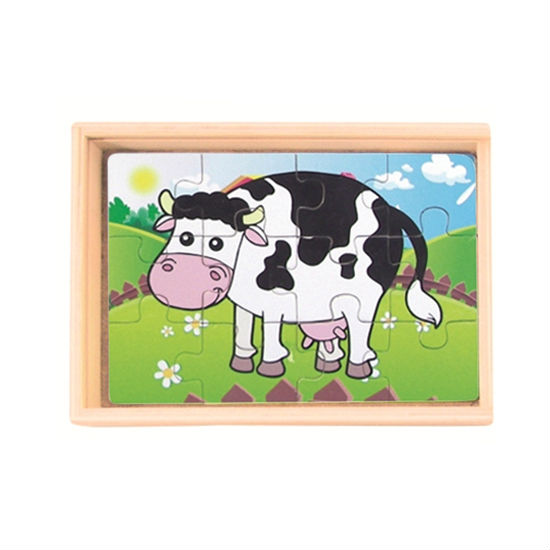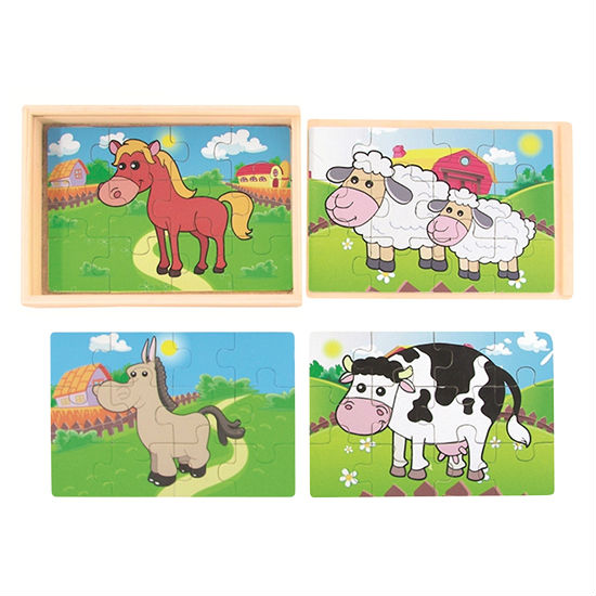 Presented here is a set of four jigsaw puzzles with cartoon farm animal drawings. The wooden puzzle pieces are delicate and smooth for little hands to grasp. The toy set is ideal for training fine motor skills and beginners’ logic.