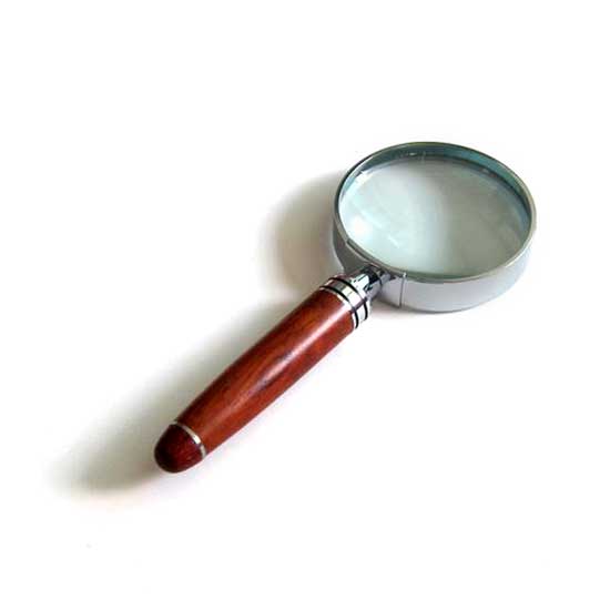 Featured is a magnifier coming with a traditional hand-held design. The wooden handle, decorated with metal details, is polished with a smooth touch. This magnifier is perfect to be kept on desktops for convenience.