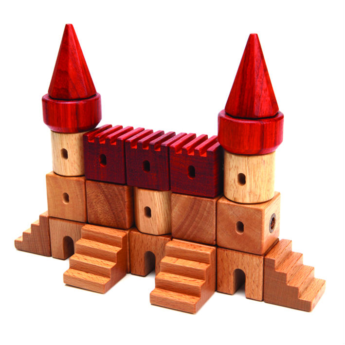 Each set of product from the smart block series is made up of 14 pieces of wooden block with nonrepelling rotating magnets so that kids can easily detach and attach when they are making models in order to child's creativity, hand-eye coordination and auditory pleasure. Having fun to play with many different shapes and sizes of blocks.