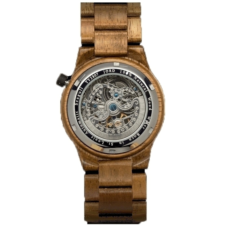 Wooden Mechanical Watches with Mineral Glass and Stainless Steel Buckle