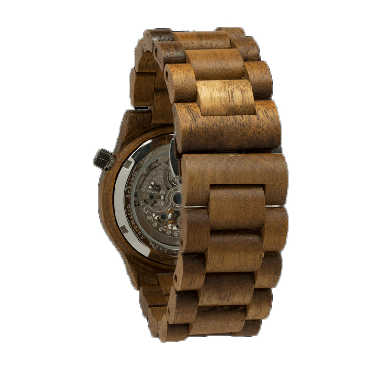 Wooden case and band, mineral glass, Mechanical movement, Stainless steel buckle.