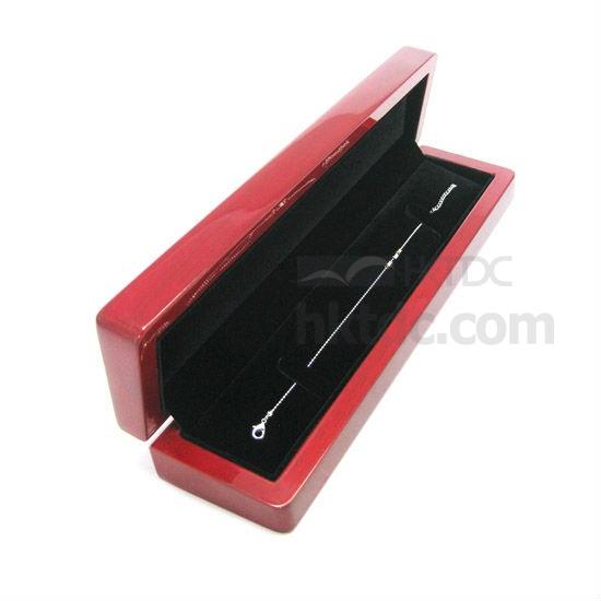 This is an elongated jewellery case with rounded edges, making the case comfortable to hold. The velvet-lined interior houses a fit-to-size rest with dual straps, which secure both ends of a bracelet or anklet. Brushed with glossy finishing, this box looks upmarket and can be wiped clean for added convenience.