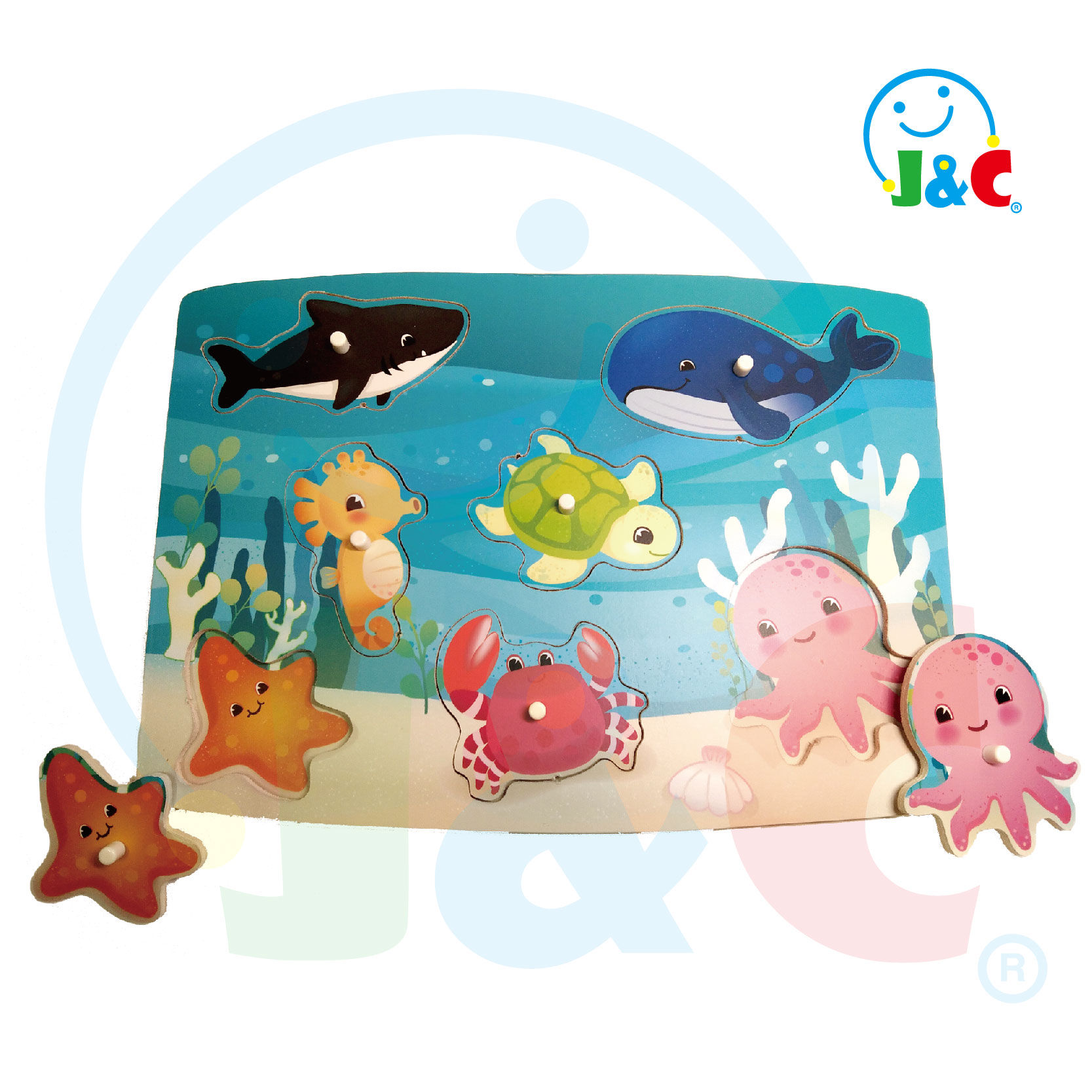 Match the correct wooden puzzle pieces to the shape on the puzzle board