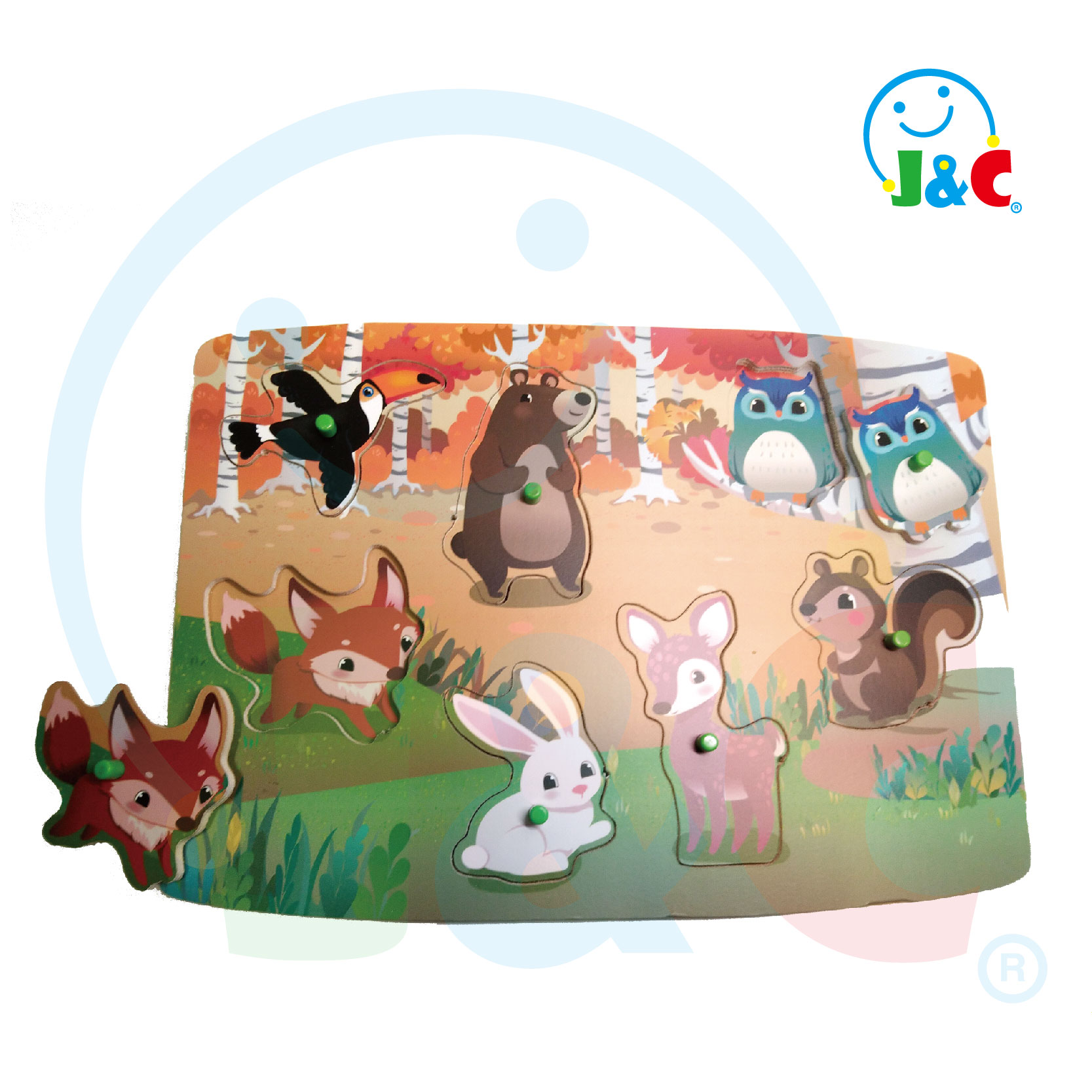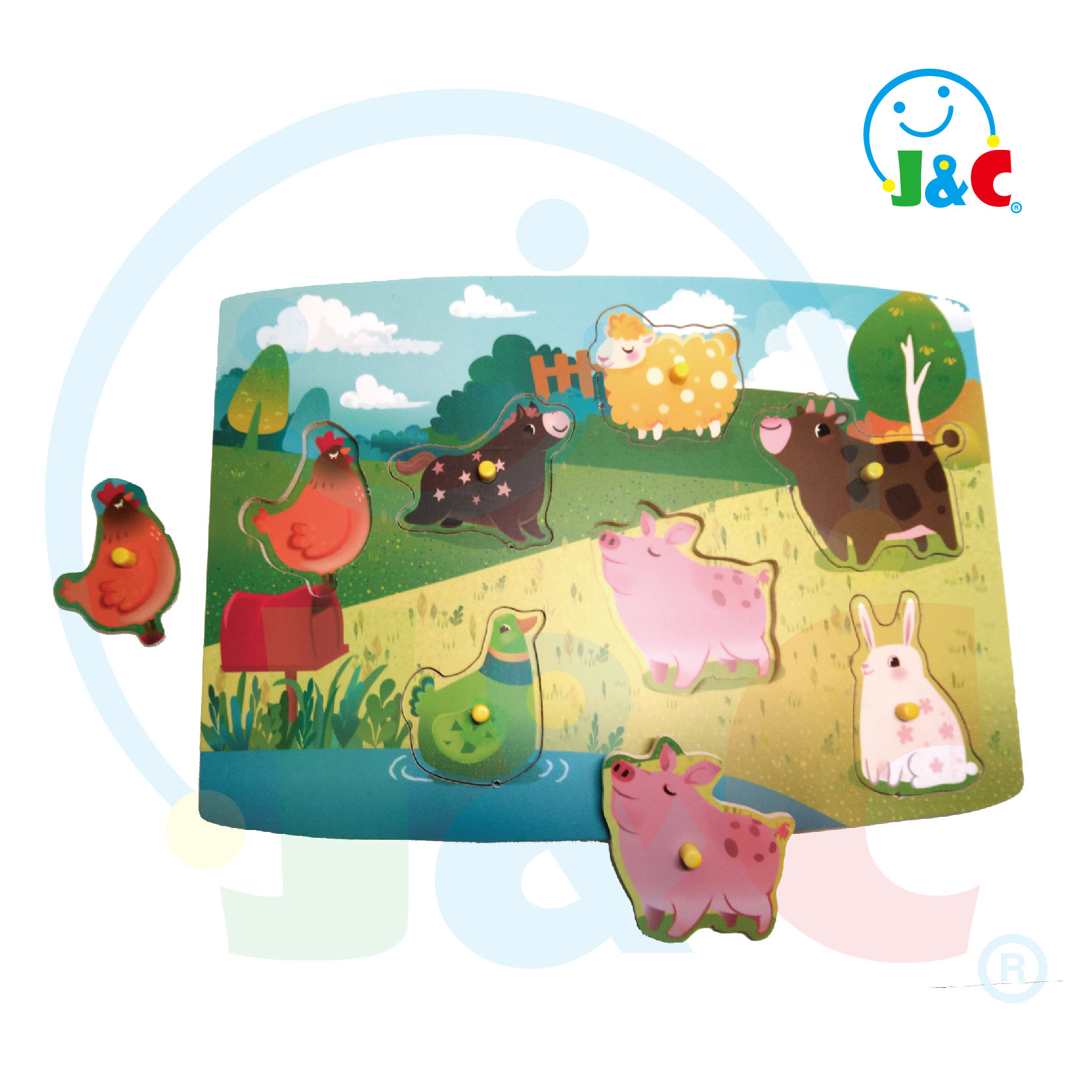 Wooden color themed puzzle which is having the individual pieces with pegs for using easily
