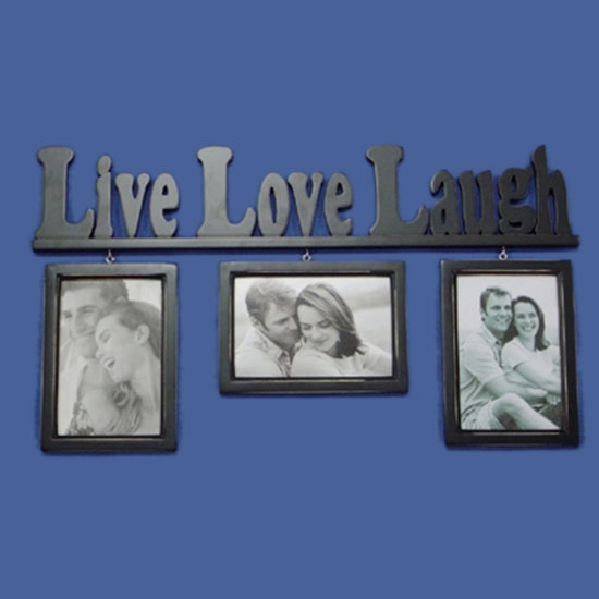 This is a gracefully designed photo frame with 3 picture frames. It is accented with a positive message, live, love and laugh. This wall-mounted photo frame complements the wall in nicely.