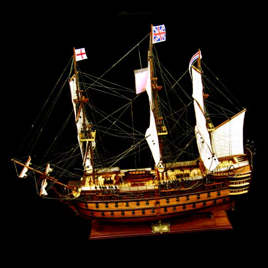 Shown here is a wooden ship model with a retro and realistic look. The wooden construction is painted in detail for a more attractive look. This antique ship model is a great collectible for a ship lover.
