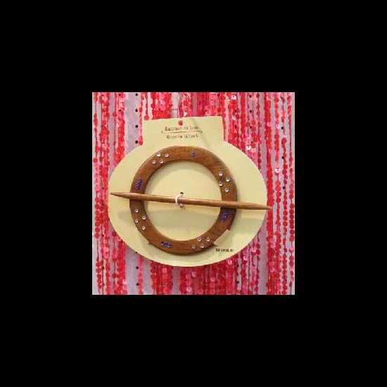 This is a wooden tie back or curtain ring in a circular shape