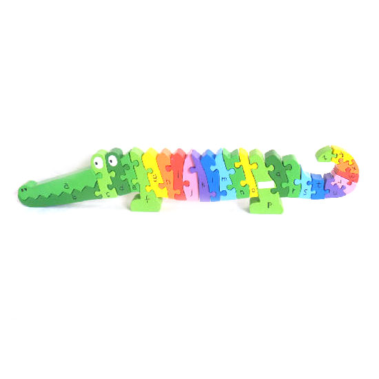 This is a wooden toy puzzle with colorful pieces. It allows children to build a vivid and cute crocodile. This puzzle toy is a great choice for developing kids' IQ and imagination.