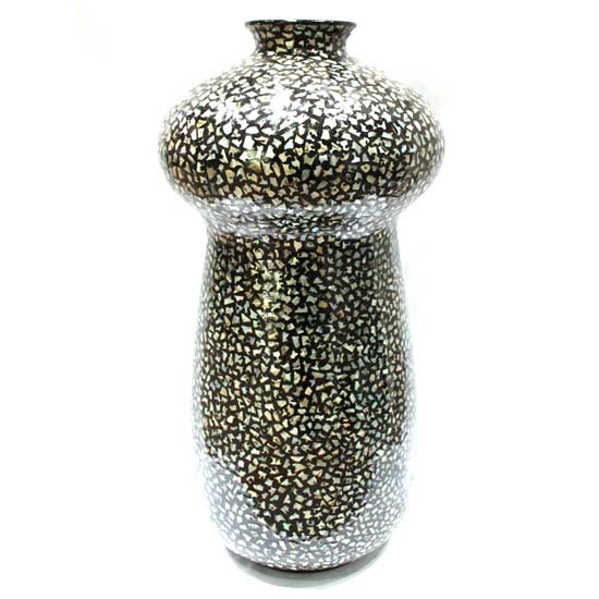 This top-quality wooden vase comes with a unique appearance attracting people's attention immediately. The shiny mother pearl decoration adds an Oriental touch to the item. The laminated surface is waterproof and corrosion resistant.
