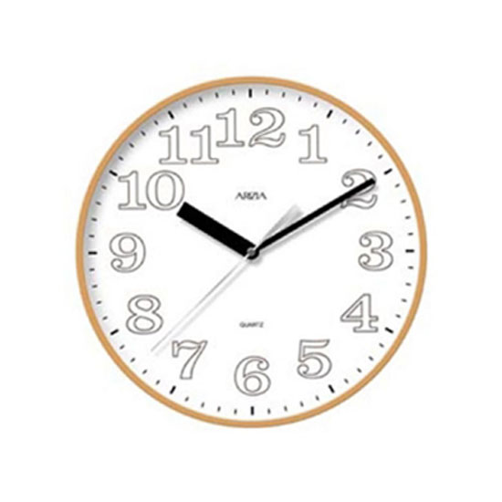 This wall clock boasts simplistic beauty with its round wooden frame. The white clock face can finely highlight the black clock hands. This reliable clock can readily inform you of the time.