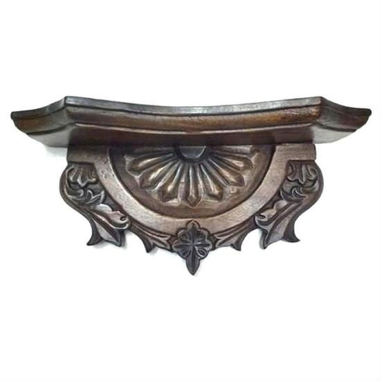 Showcased is a wooden wall shelf featuring floral engravings. The shelf’s floral engravings match with the dark wooden tone to exhibits an antique accent. The wall shelf is robustly structured for enhanced durability.