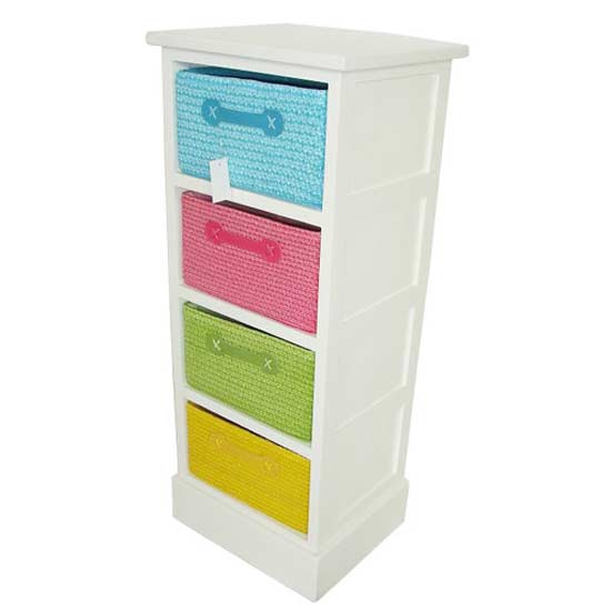 The household wardrobe showcases a modest design in white, blending into your bedroom setting without sabotaging the decor. The well-arranged compartments are filled with colorful baskets for efficient storage of clothes. Exquisitely made with quality in mind, this household wardrobe is an unbeatable choice that helps you keep your garments organized while accentuating your bedroom style.
