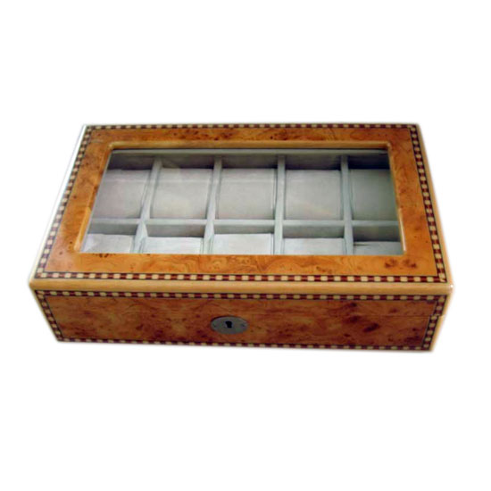 The watch box lets you store ten of your favorite watches for display or travel. The transparent window allows a full glimpse of the contents. This wooden watch box makes a great gift for watch enthusiasts.