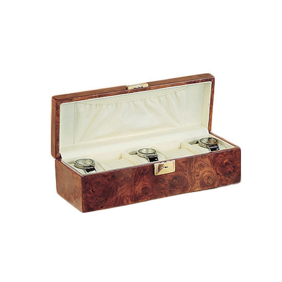 This wooden box can finely house 5 wristwatches. The interior is padded to offer good protection for your collection. This excellent box can be locked for enhanced security.