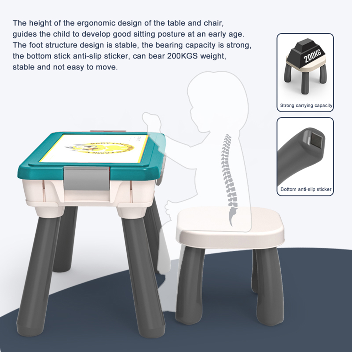 【Product size】: Table size: 50*33*39.5CM, Chair size: 26*26*22.5CM