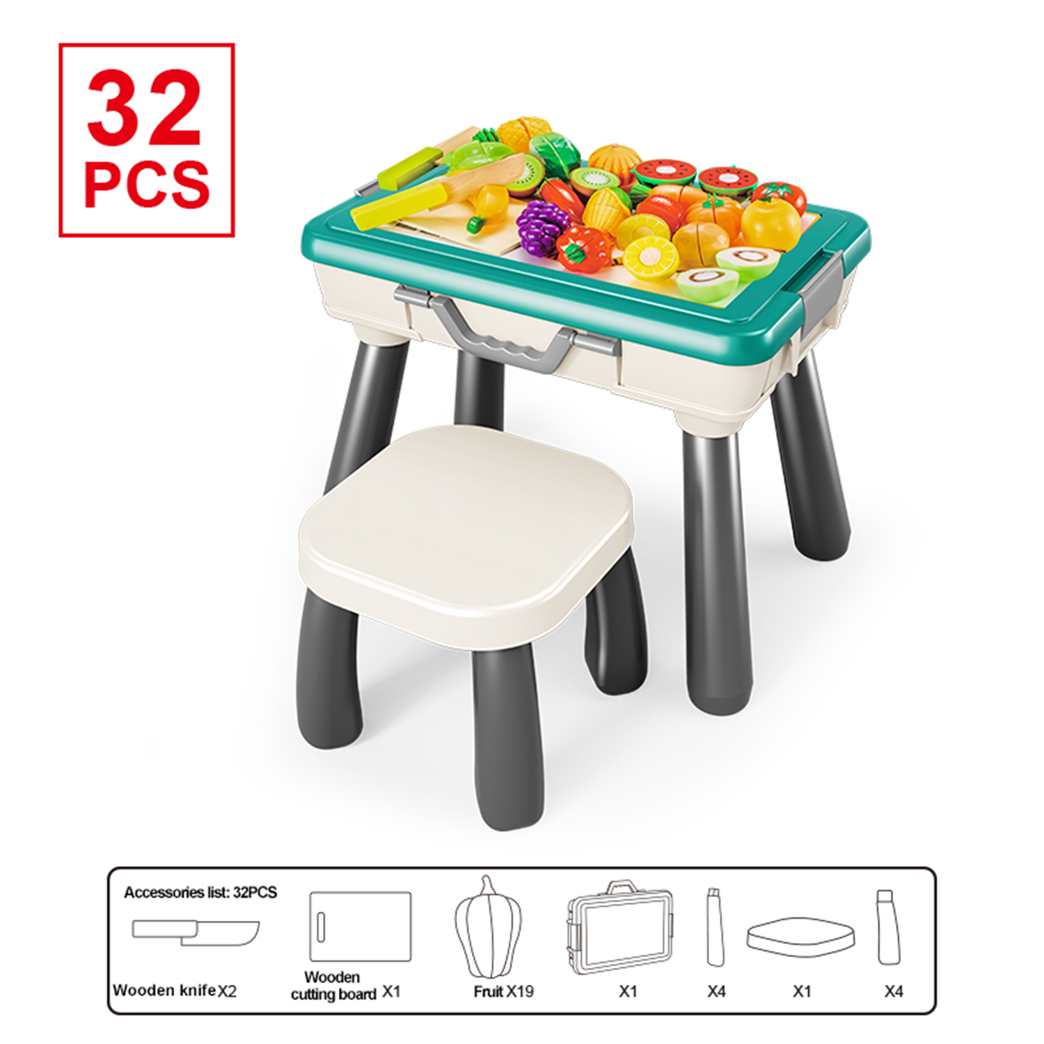 Toy cutting food storage table 32pcs