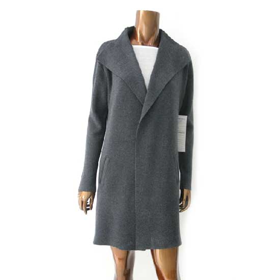 This is a women's cardigan made of wool. In a long length, this wool cardigan features large lapels for a fashionable look. The high quality wool offers a soft touch for comfortable wearing.