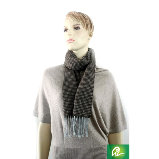 This pictured scarf comes with fashionable checked patterns. The waffle-jacquard design exhibits a touch of modern style. This pure wool scarf keeps you warm and in style in the breezy days.