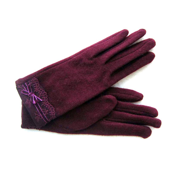 Presented here is a pair of dress gloves with a stylish design. The hem of this pair of dress gloves is accented with a bow and lace design, showcasing an elegant touch. Make a statement with this refined pair of dress gloves.
