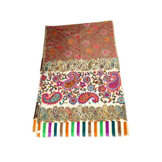 This woolen scarf is accented with vibrant floral motifs. Made from 100% wool, the scarf is ultra soft and warm to the touch. The colorful striped hem completes the design of this piece.