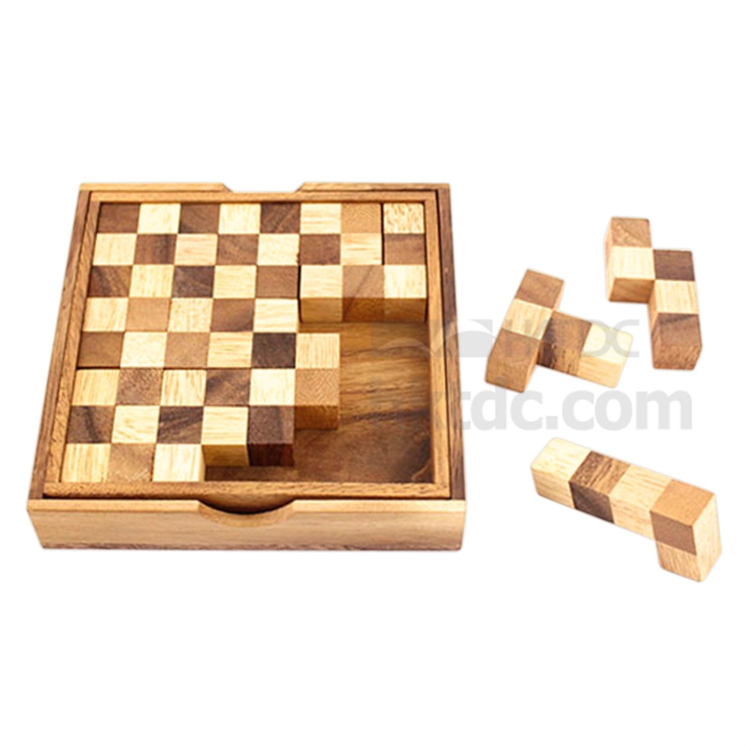 Develop your problem-solving skills with this wooden pentominoes brain teaser puzzle. This intriguing puzzle comes with thousands of possible solutions to form a complete square. With a base and a matching lid, the wooden pieces can be stored safely in the box. This wooden pentominoes brain teaser puzzle can be used as an effective teaching tool in mathematics class.