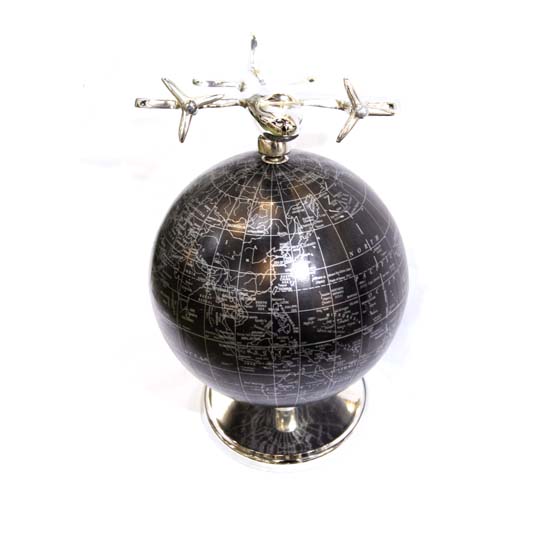 Presented is a desktop globe decorated with classy accents for a completed look. The globe is well made of aluminum for added sturdiness. This desktop globe is a good tool to let you revise your geographic knowledge anytime.