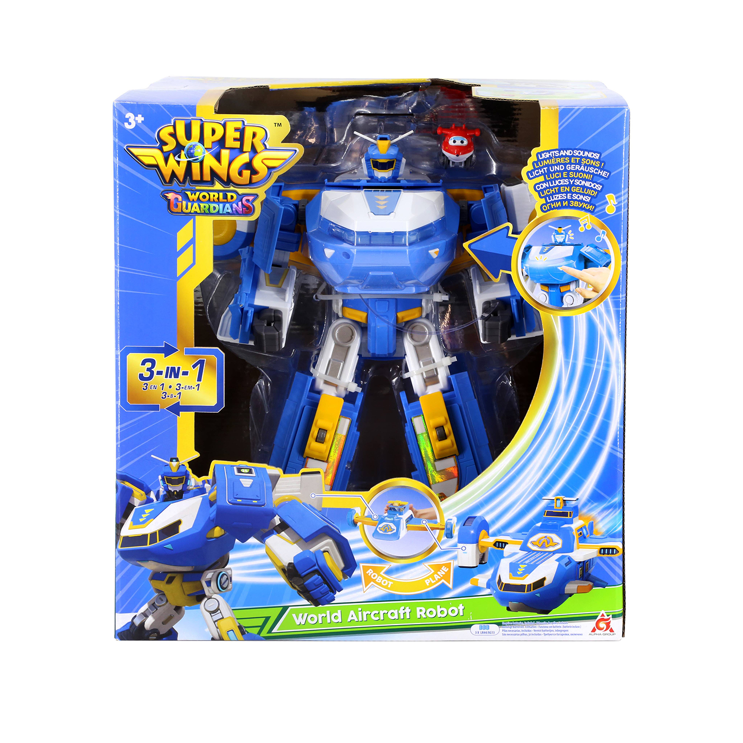 -LIGHTS AND SOUNDS: This 13inch Robot features lights and sounds from the new season Super Wings World Aircraft!