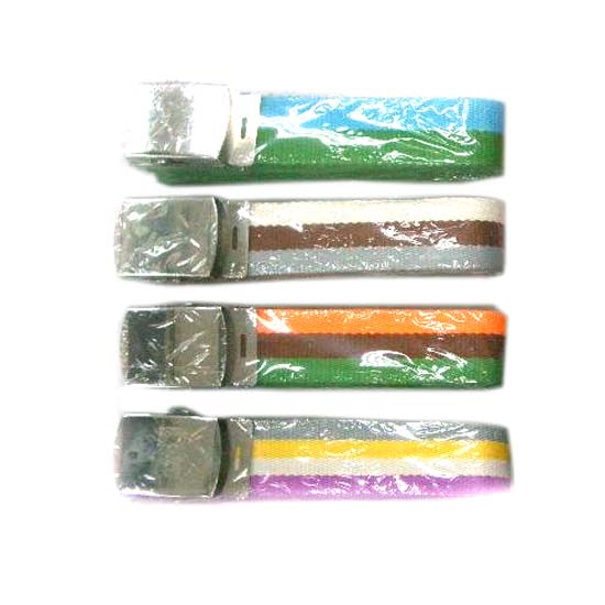 Displayed here are stylish woven belts boasting strip designs in vibrant colors. The belt is woven with high-quality materials for high durability. The fashionable waist belt makes an excellent accessory to your pants.