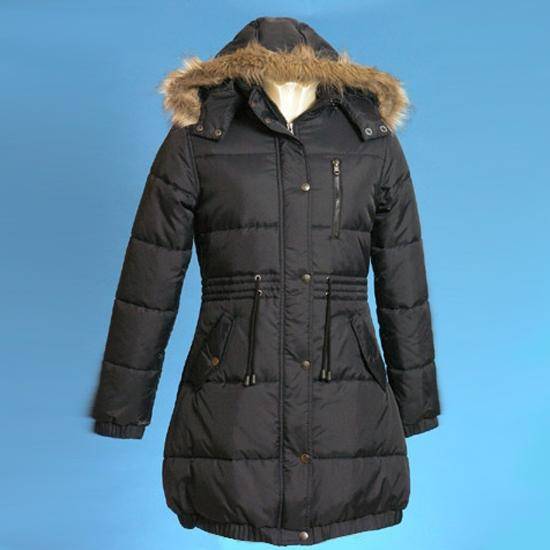 This is a quilted-down jacket for ladies. It comes with seven buttons on top of the zipper, which keep you oblivious to the cold. The faux-fur-lined hood and front slant welt pockets make it a warm and elegant choice for ladies' winter outfits.