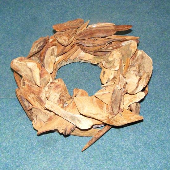 This is a round wreath made of quality draft wood. The round wreath is made of irregular sized wood pieces. The round wreath is suitable for hanging on doors.