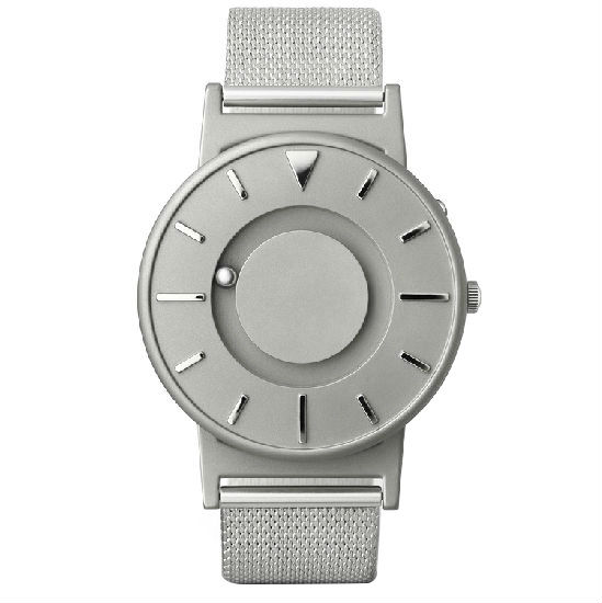 Since the Bradley doesn’t require sight to tell time, we call it a timepiece instead of a watch. But it’s not just functional; it’s also fashionable. The Bradley is made of solid titanium and runs on a Swiss quartz movement. Instead of traditional watch hands, time is indicated by two ball bearings – one indicating minutes (top), and one indicating hours (side).