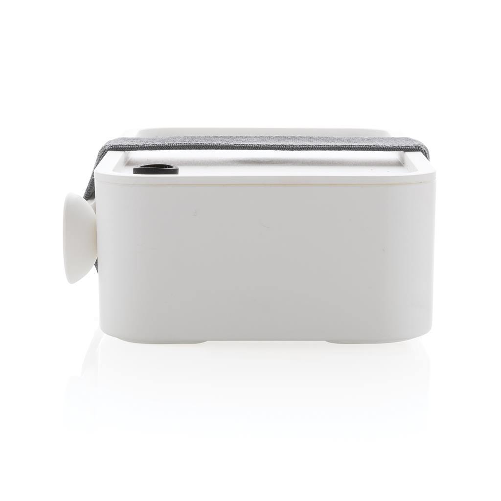 This stylish and sturdy lunchbox fits perfectly with a healthy lifestyle. It is big enough for carrying sandwiches and delicious salads, but also for heating up pasta or rice meals. Made from PP, it is dishwasher and microwave safe. Including a handy spork and elastic strap. Capacity 1.2 litre