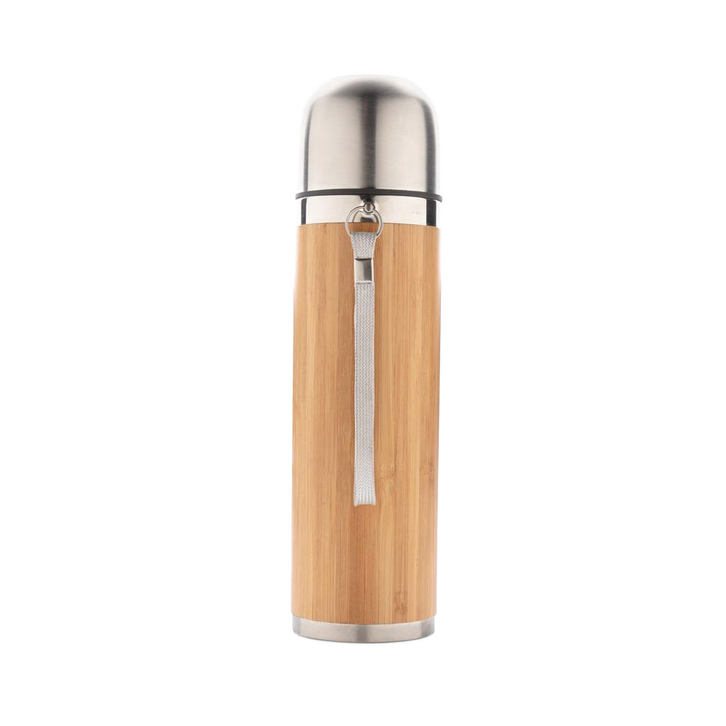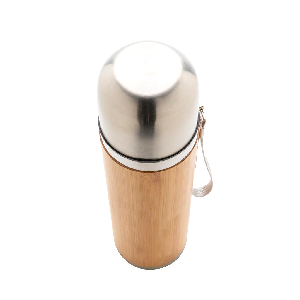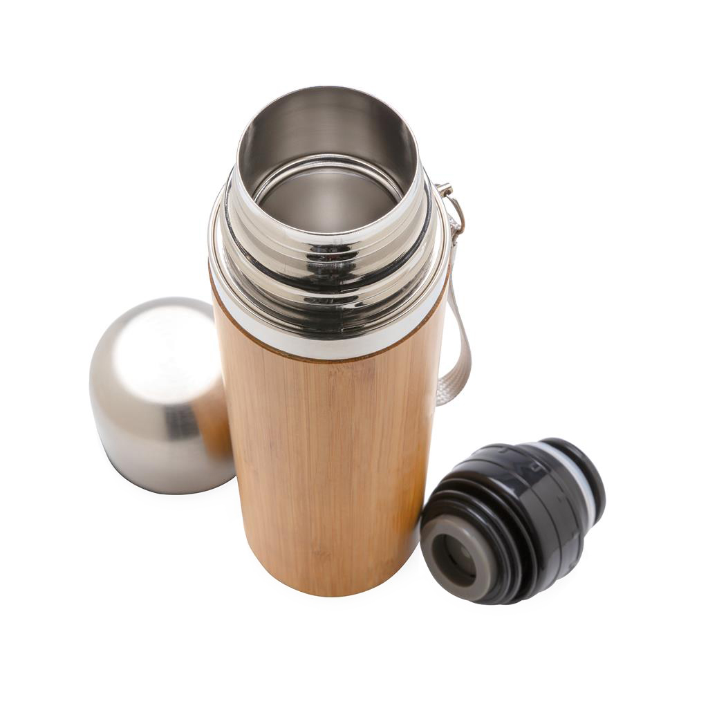 This unique vacuum travel flask comes with 304 food grade and rustproof stainless-steel interior walls and organic bamboo exterior.